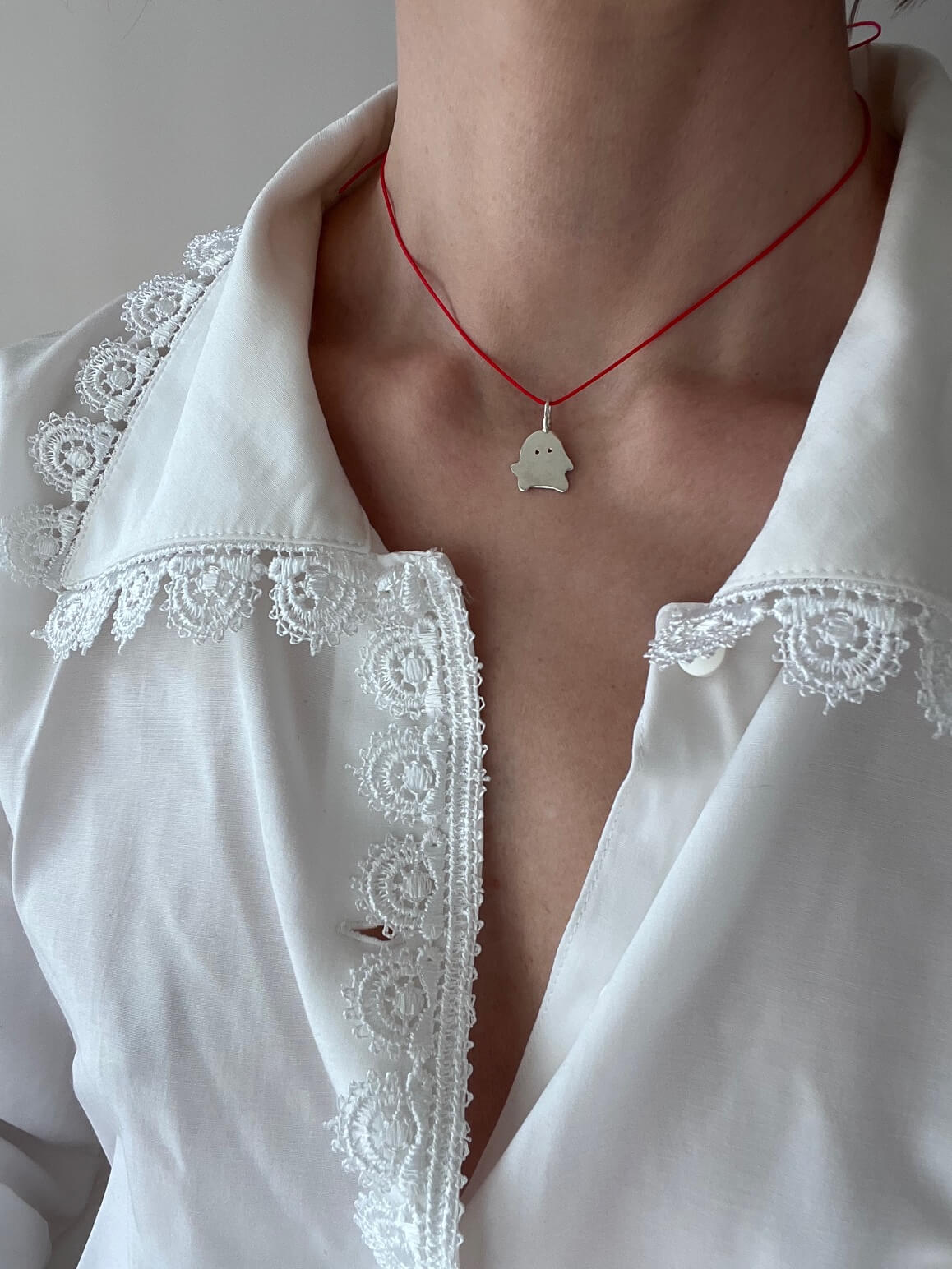 W zastawie jest cieńki czerwony sznureczek o długośći 70cm, który możesz dowolnie wiązać. Cuudak lubi też być dowieszony do ulubionego kolczyka lub łańcuszka. Niech Ci towarzyszy tak jak lubisz najbardziej.