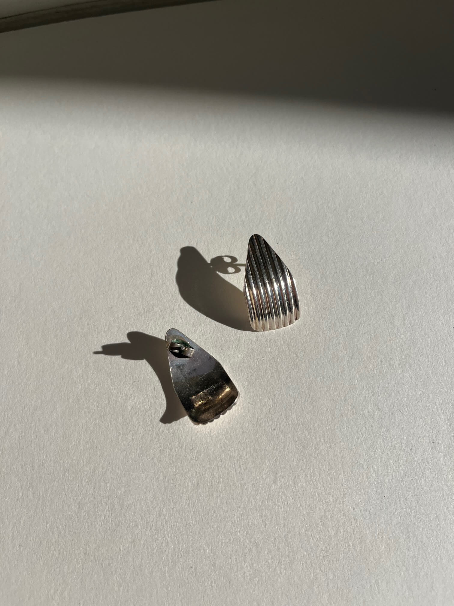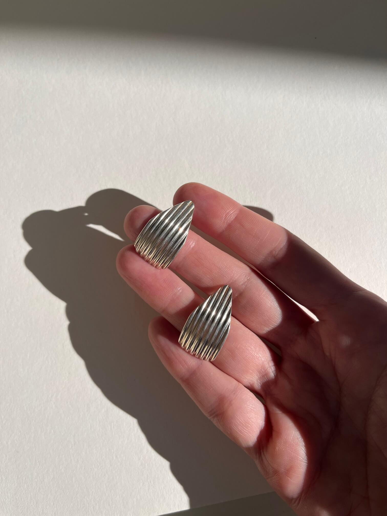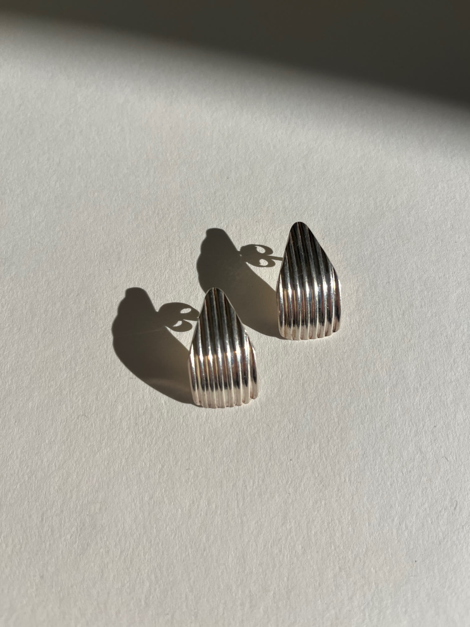 Srebrne kolczyki o minimalistycznej, lekko obłej formie. Zapinene na sztyfty. Długość kolczyka 28mm.