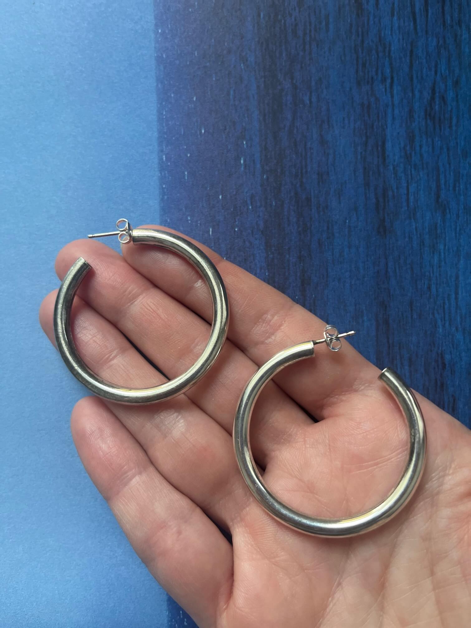 Srebrne kolczyki koła. Średnica 4,2cm. Wyglądają na masywne, ale są leciutkie.