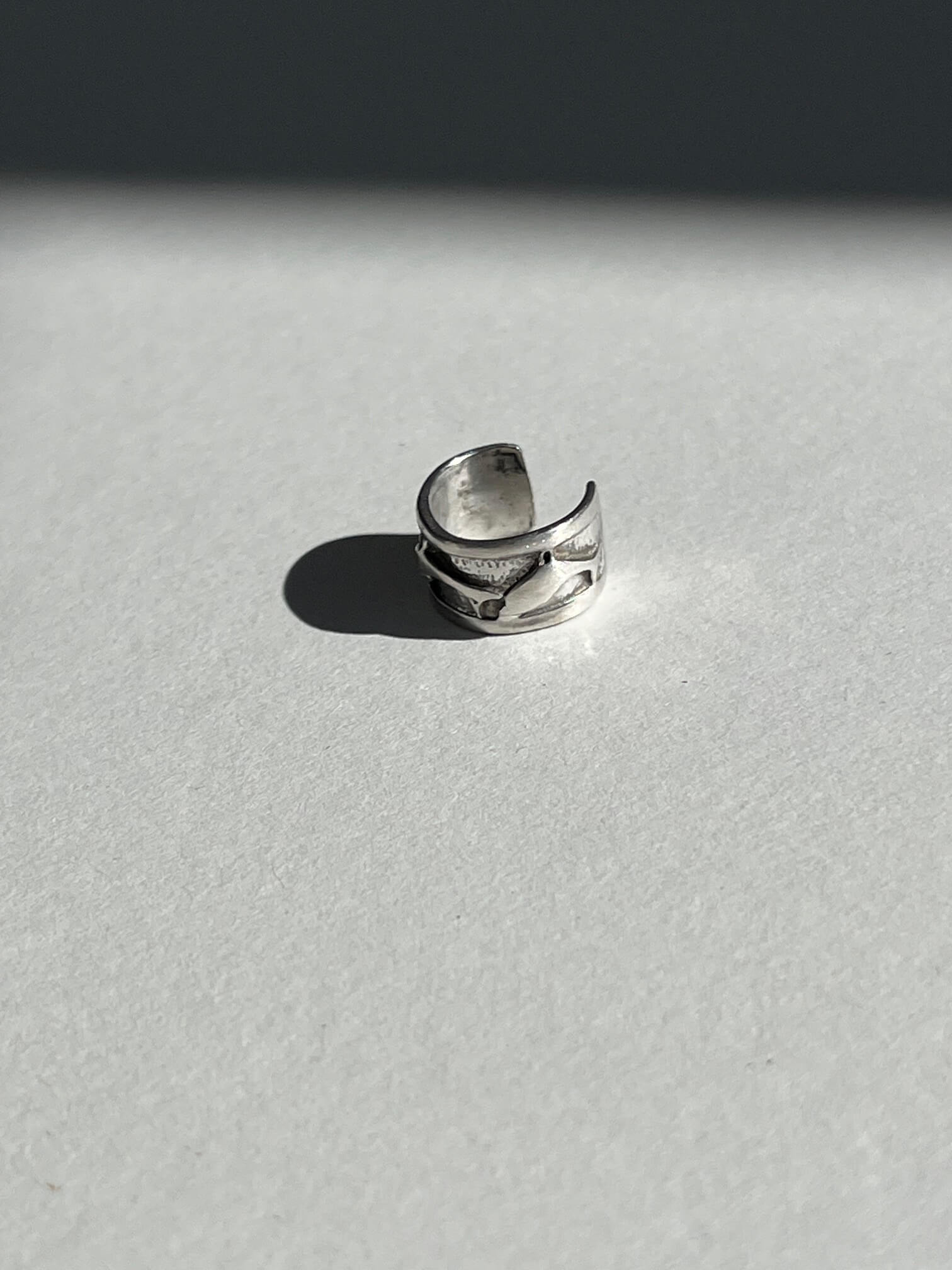 Srebrna nausznica z elementami skaczących delfinów.