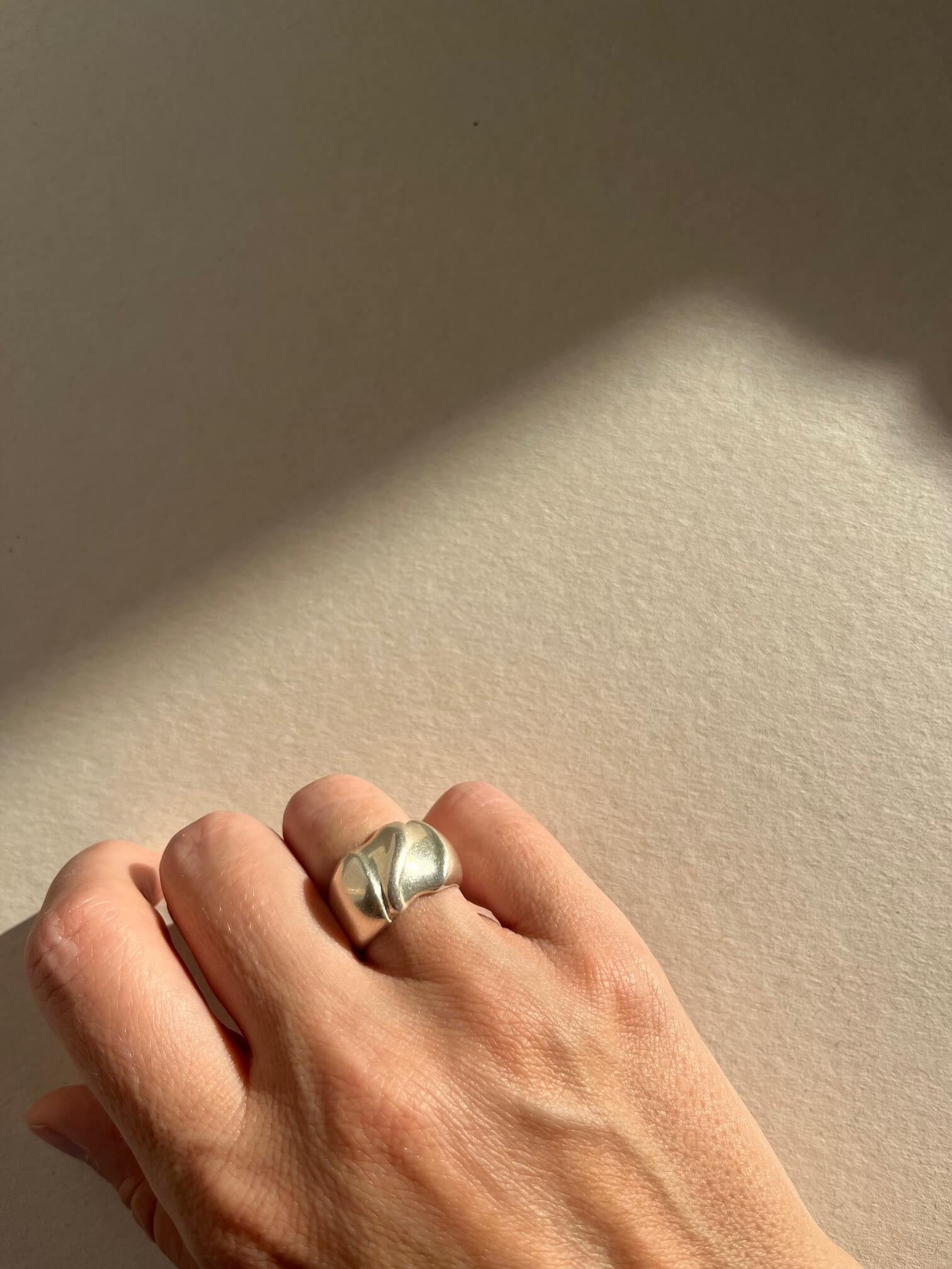 Srebrny pierścionek o mega ciekawej, płynnej formie.