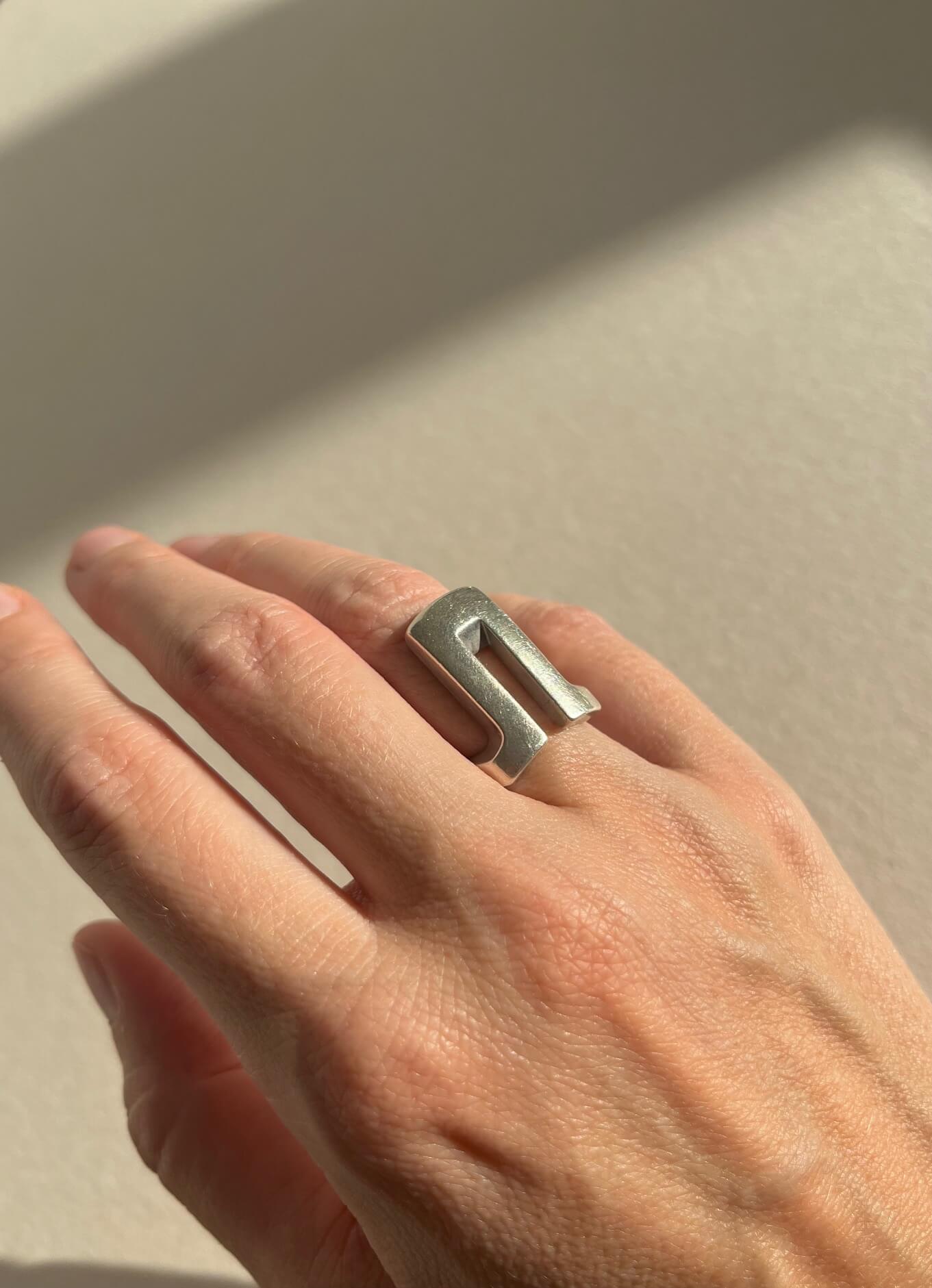 Srebrny pierścionek o minialistycznej, brutalistycznej formie. Mega unikatowy.