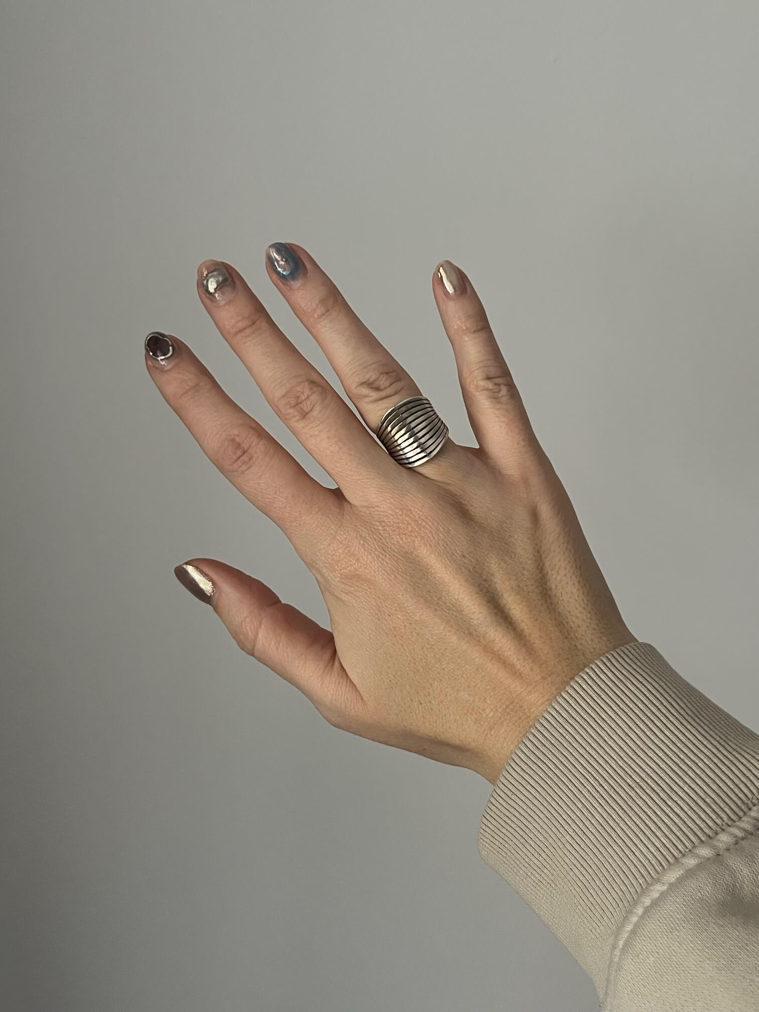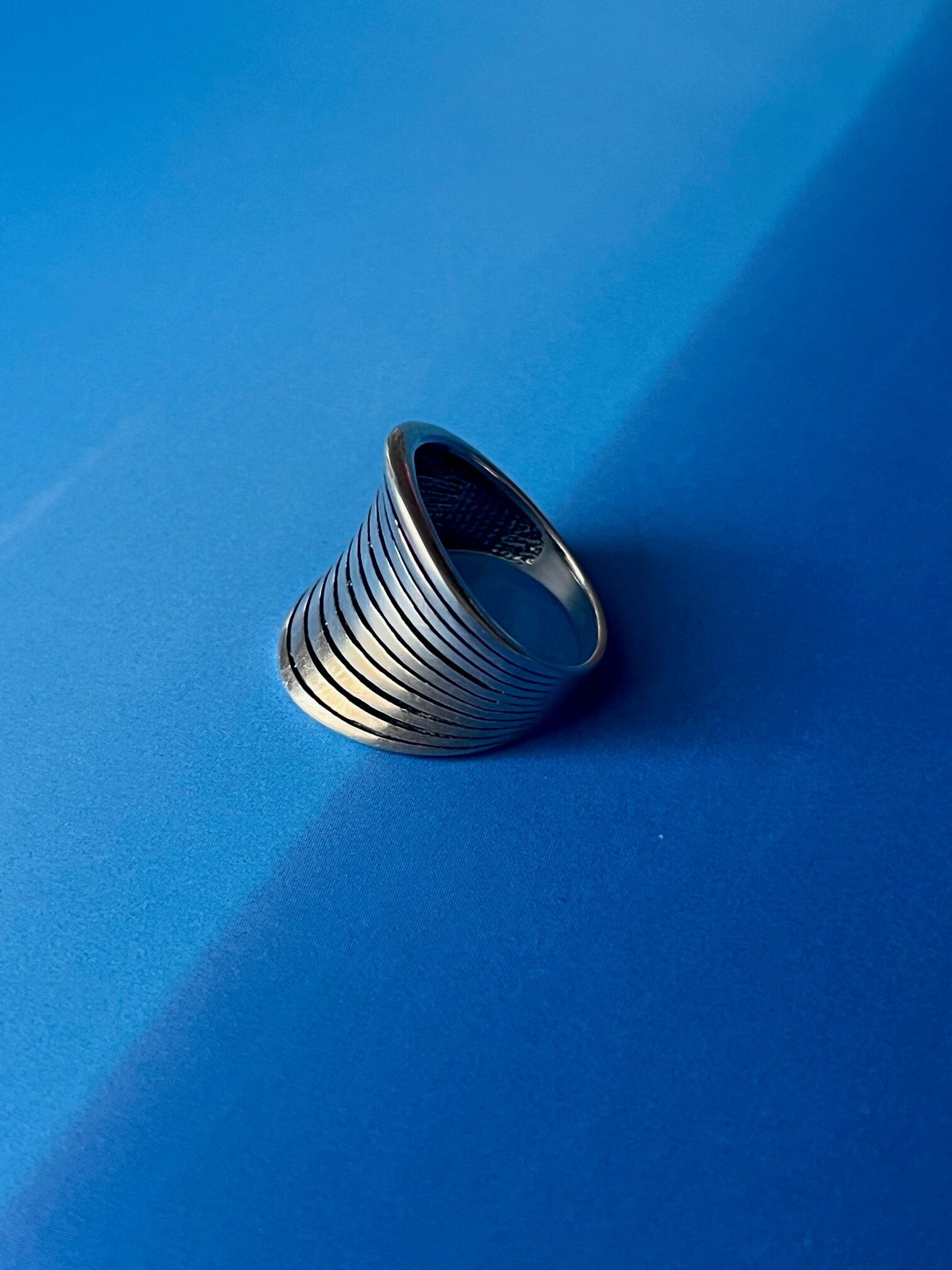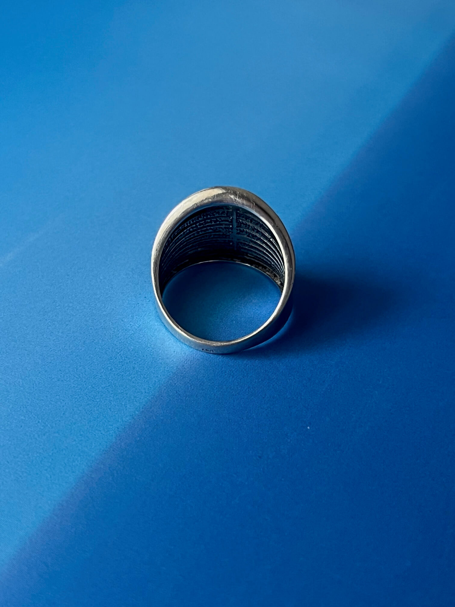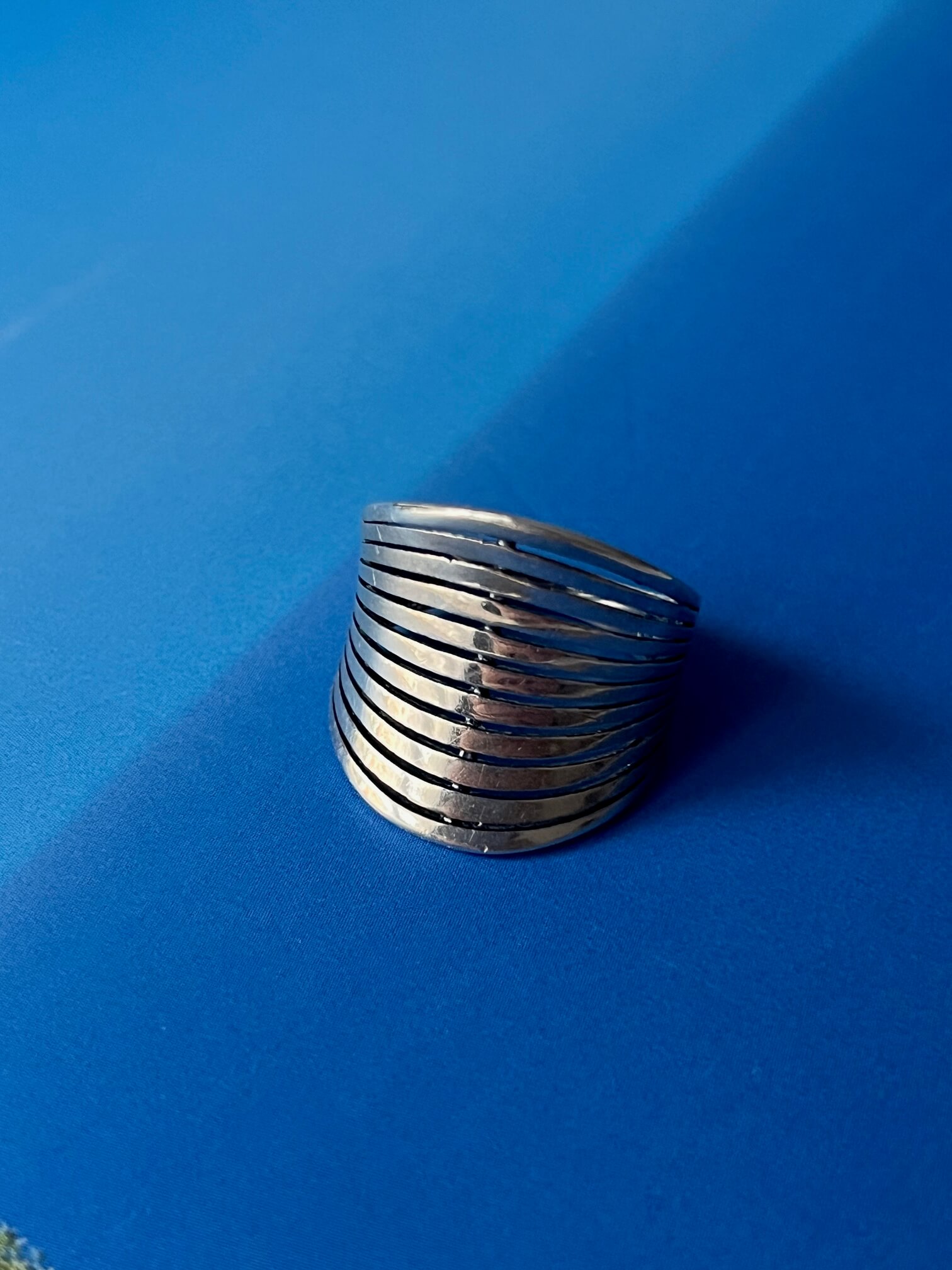Srebrny pierścionek opięknej nieco organicznej formie.