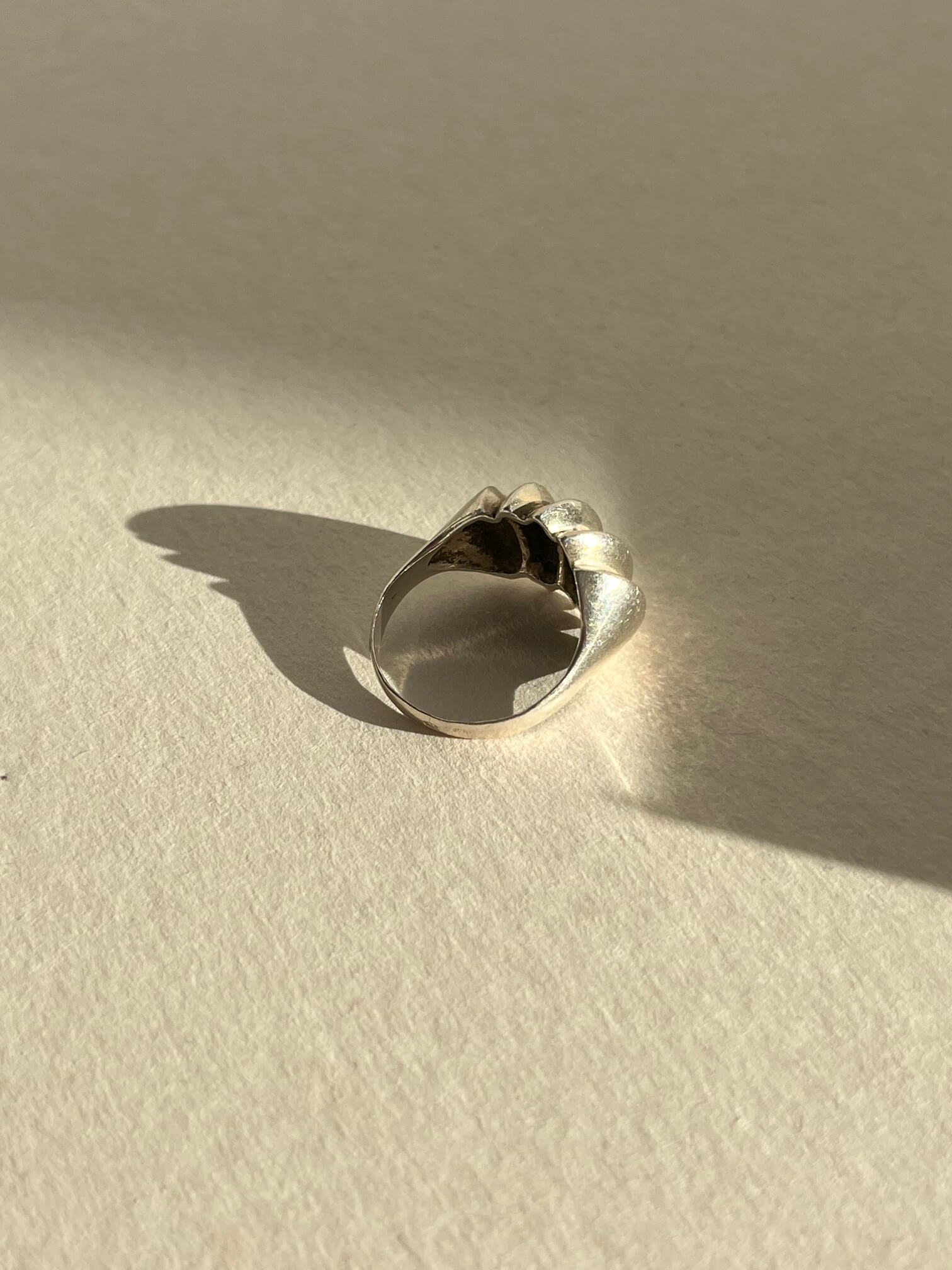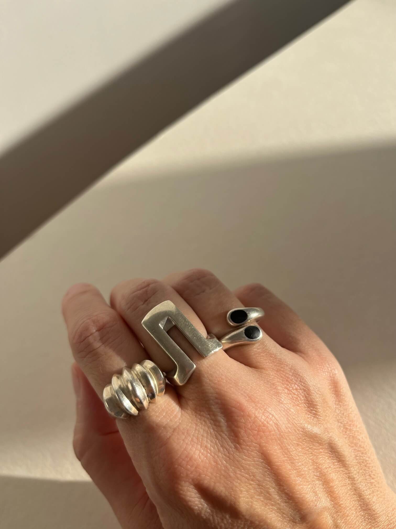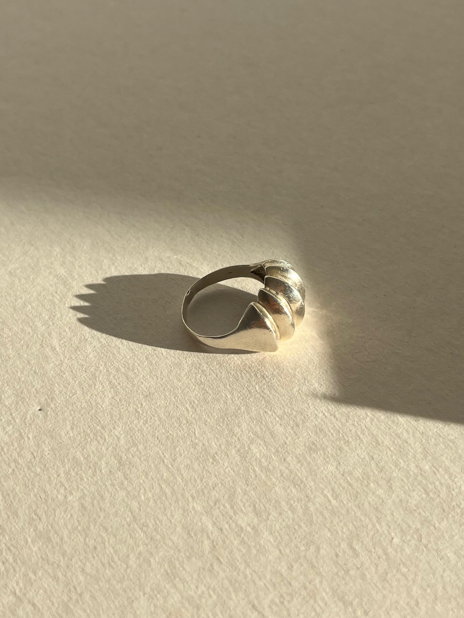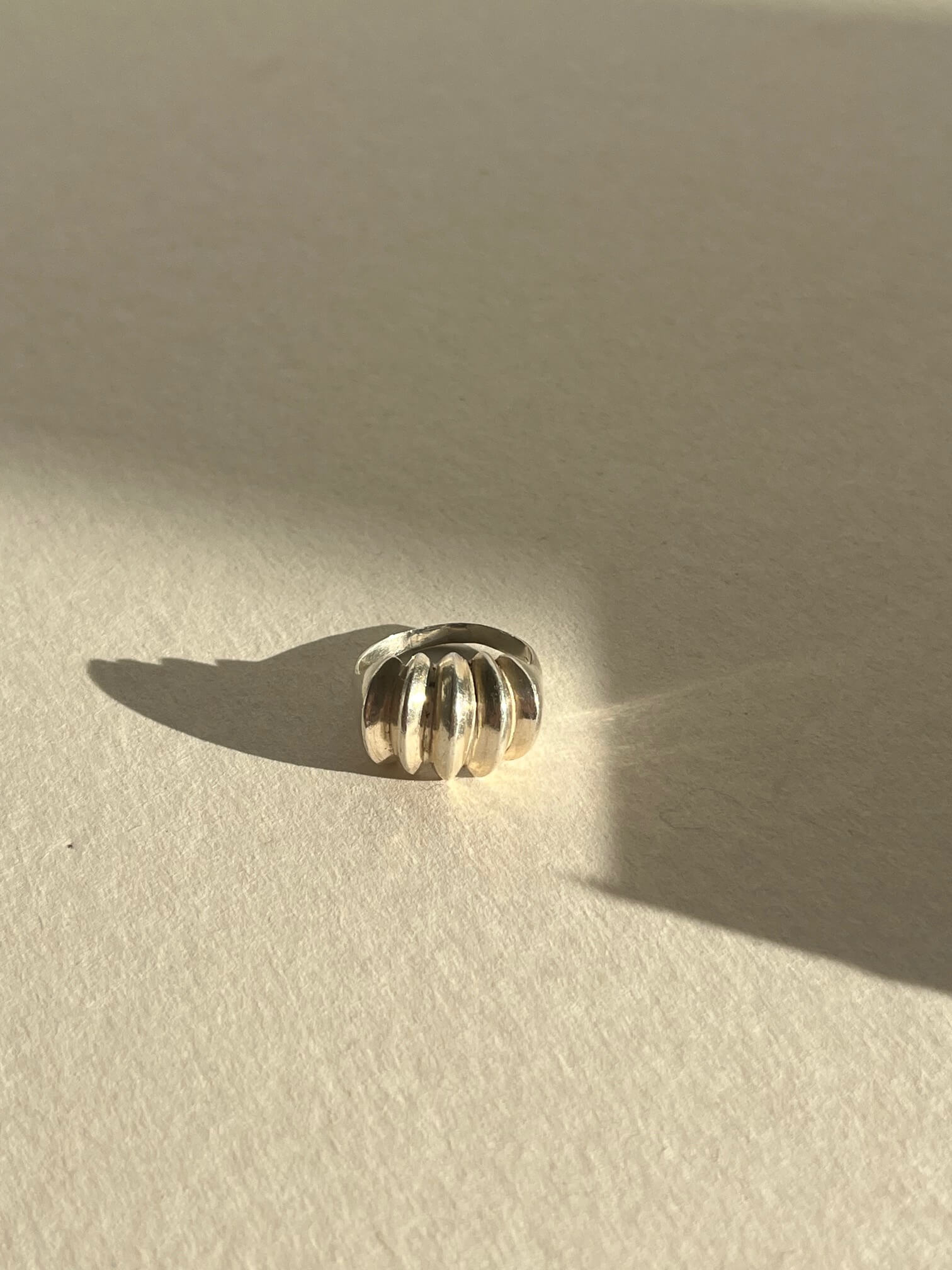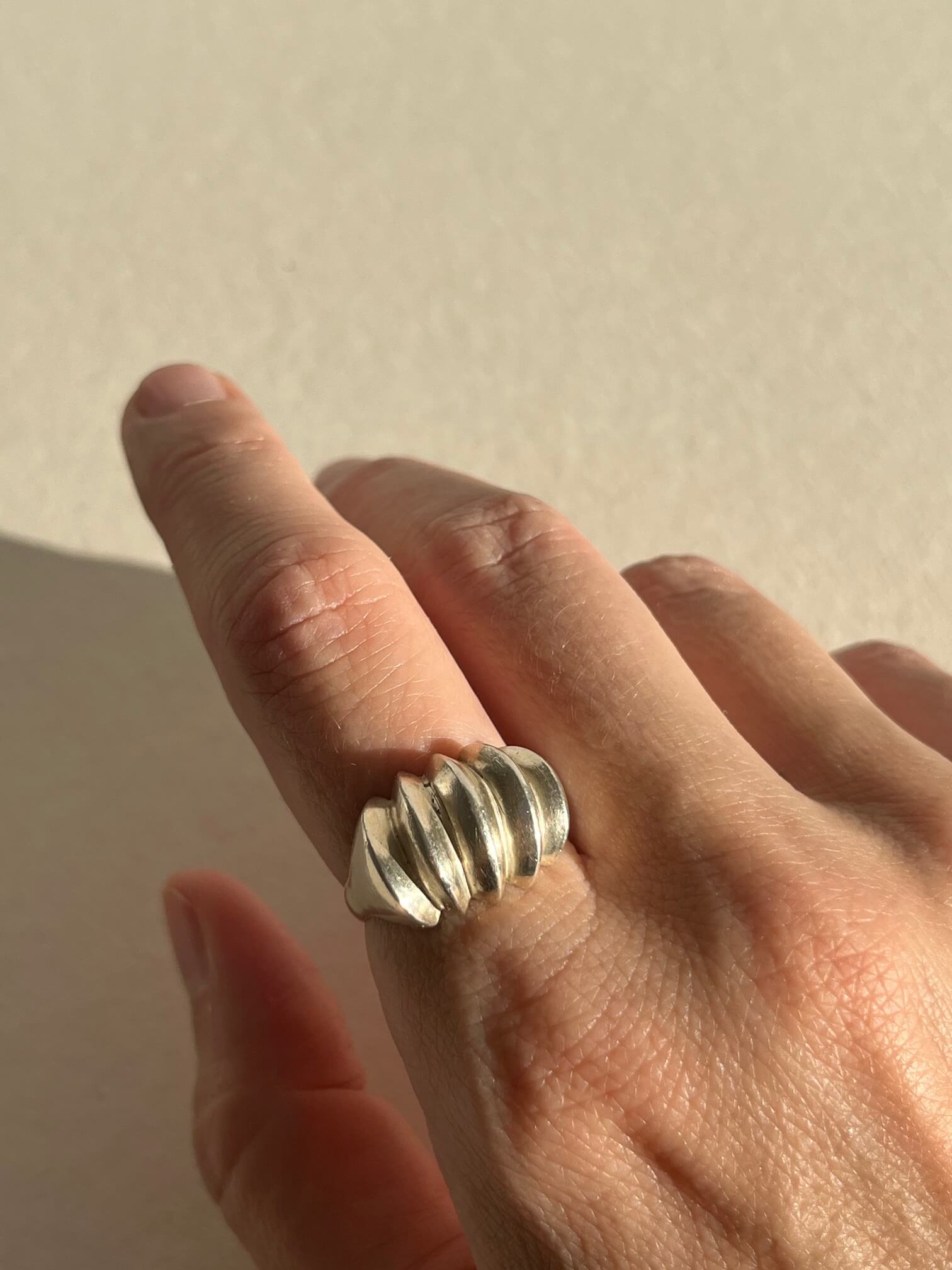 Srebrny pierścionek o mega ciekawej, karbowanej formie.